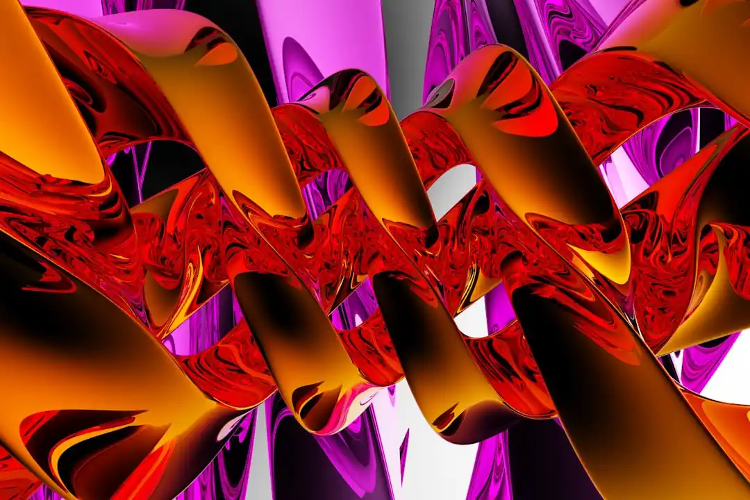 A vibrant, abstract image generated by a computer, featuring flowing shapes in shades of red and orange.
